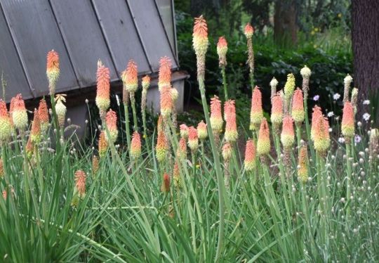 Aus der reichen Pflanzenwelt Südafrikas sind nur wenige Arten bei uns winterhart, wie z.B. die attraktive Fackellilie (Kniphofia), die Kapfuchsie (Phygelius capensis), Haplocarpa rueppelii, ein gelb blühender, niedriger und sehr wüchsiger Korbblütler sowie eine Hybride der Schmuckblume (Agapanthus), die jedoch einen Winterschutz benötigt.
