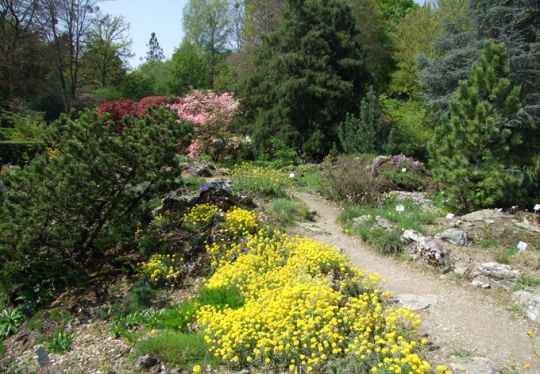 Anlagen, in denen Gebirgspflanzen zu sehen sind, werden gemeinhin als „Alpinum" bezeichnet. Namensgebend für die hier vertretenen „Alpenpflanzen" ist der – im weltweiten Vergleich eigentlich eher kleine – Gebirgszug der Alpen.