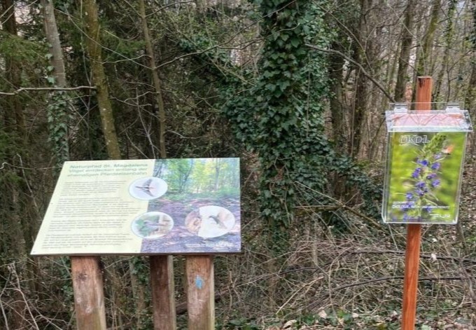 Entlang des Weges finden Sie auf 11 Schautafeln Wissenswertes über die hier vorkommenden Vertreter der heimischen Vogelfauna. Die Palette reicht von den Vögeln im Siedlungsraum über Waldvögel, Spechte und Greifvögel. Sie bekommen Tipps zum Bau von Nistkästen und erfahren wie Sie Ihren Privatgarten naturnah und damit vogelfreundlich gestalten können.