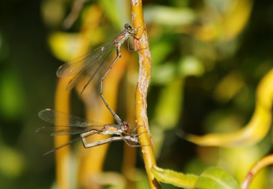 Die Weidenjungfer sticht ihre Eier in die über dem Wasser hängenden Zweige von Bäumen oder Sträuchern (z. B. Weiden) ein.