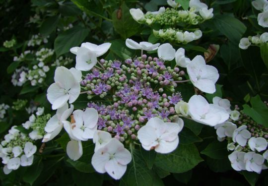 Eine weitere Gruppe sind die Hortensien (Hydrangea), die mit schirm-, rispen- oder ballartigen Blütenständen zu den Stars unter den Sommerblühern zählen. Typisch für die Gattung ist, dass die meisten Arten sterile, auffällig vergrößerte Randblüten bilden, die zur Verbesserung der Schauwirkung für die Blütenbesucher dienen. Die eigentlichen, zur Fortpflanzung dienenden Blüten sind hingegen relativ klein und unscheinbar. Das ursprüngliche Verbreitungsgebiet der rund 70 wild vorkommenden Hortensienarten erstreckt sich über die gemäßigten Regionen Süd- und Ostasiens, sowie Nord- und Südamerika. Besonders auffällig sind die Züchtungen aus der Art Hydrangea macrophylla und die Rauhblatt-Hortensie (Hydrangea aspera), deren Blätter sich wie ein Plüschtier anfühlen.