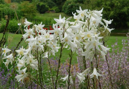Die eleganten Blüten der Lilien sind sehr auffällig. (Lilium candidum)