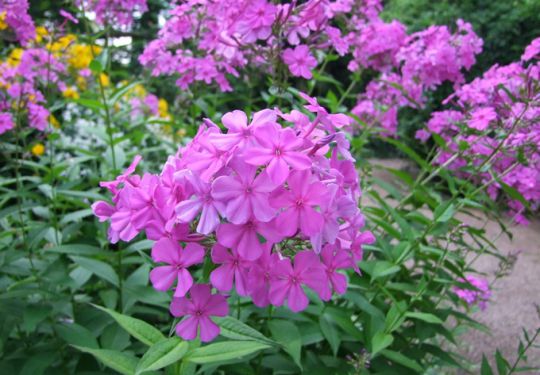 Besonders ins Auge springen die Phloxe, von denen es ungefähr 70 Wildarten gibt, die großteils in Nordamerika, aber auch in Russland vorkommen. Die häufig in Gärten kultivierten Züchtungen stammen von der in den USA vorkommenden Wildform Phlox paniculata (Rispen-Phlox).