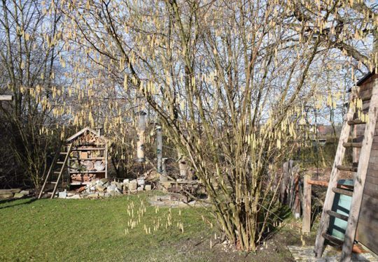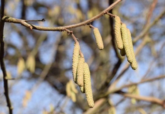 Des einen Freud, des Pollenallergikers Leid – der Haselstrauch (Corylus avellana) ist einer der ersten heimischen Wildsträucher der seine Blüten öffnet. Bereits im Februar blühen die bis zu 10 cm langen männlichen Kätzchen auf und entlassen ihren gelblichen Pollen. Sie werden auch gerne von Bienen besucht. Die Bestäubung erfolgt jedoch über den Wind, weshalb große Mengen notwendig sind, damit genügend Pollenkörner ihren Weg zu den unscheinbaren weiblichen Blüten finden und es zur Bestäubung kommt.