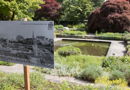 Das Jahr 2022 steht ganz im Zeichen des Jubiläums. Im Garten werden historische Fotos der heutigen Ansicht vor Ort gegenübergestellt. Erstaunlich, wie sich der Garten in den 70 Jahren verändert bzw. entwickelt hat!